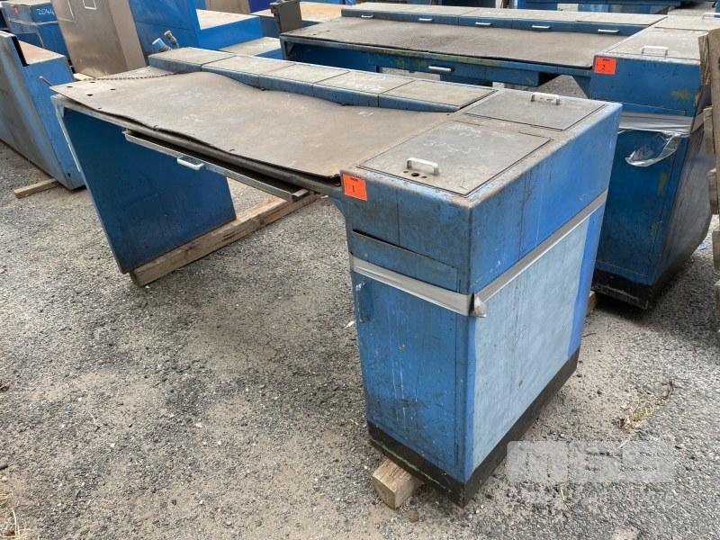 HEAVY DUTY SERVICE BENCH, WITH 7 x INBUILT PARTS BINS, UNDER DESK PULL OUT TRAY & AIR REGULATOR, 2140 x 730 x 970mm (H)