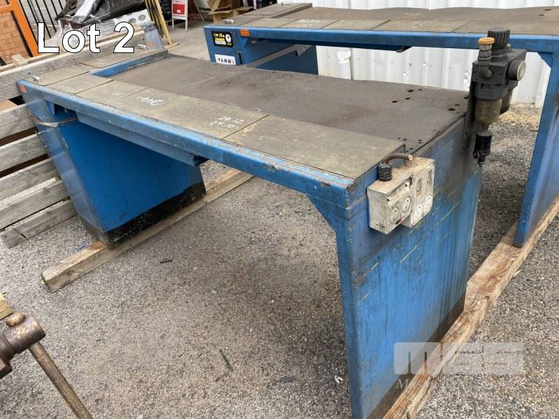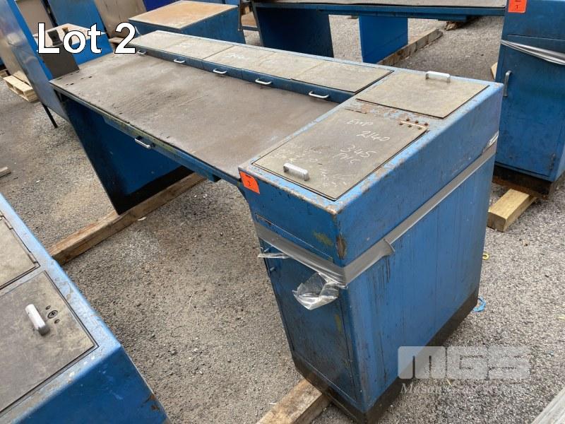 HEAVY DUTY SERVICE BENCH, WITH 7 x INBUILT PARTS BINS, UNDER DESK PULL OUT TRAY & AIR REGULATOR, 2140 x 730 x 970mm (H)