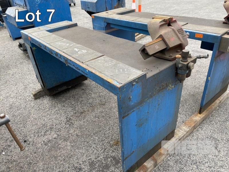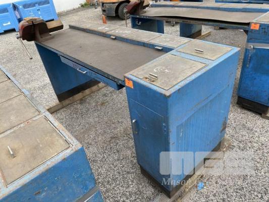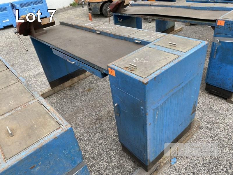 HEAVY DUTY SERVICE BENCH, WITH 7 x INBUILT PARTS BINS, UNDER DESK PULL OUT TRAY & AIR REGULATOR, 2140 x 730 x 970mm (H) WITH 5 INCH DAWN VICE