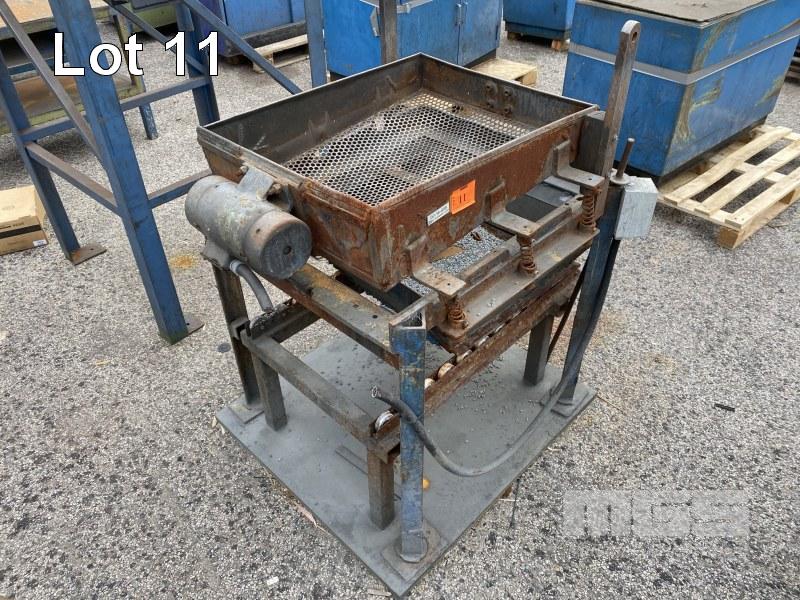 LIGHT WEIGHT SHAKER TRAY 415V VIBRATING MOTOR 750 x 600mm TRAY, WITH ROLL OUT PRODUCT BIN