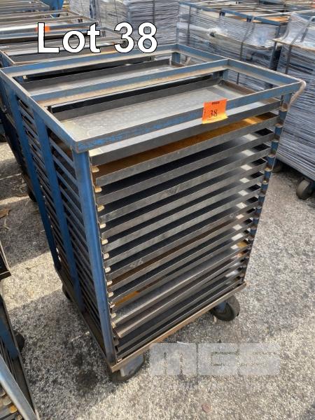 HEAVY DUTY 32 TRAY PARTS TROLLEY, 660 x 570mm 1100mm, STEEL TRAY: 600 x 260mm
