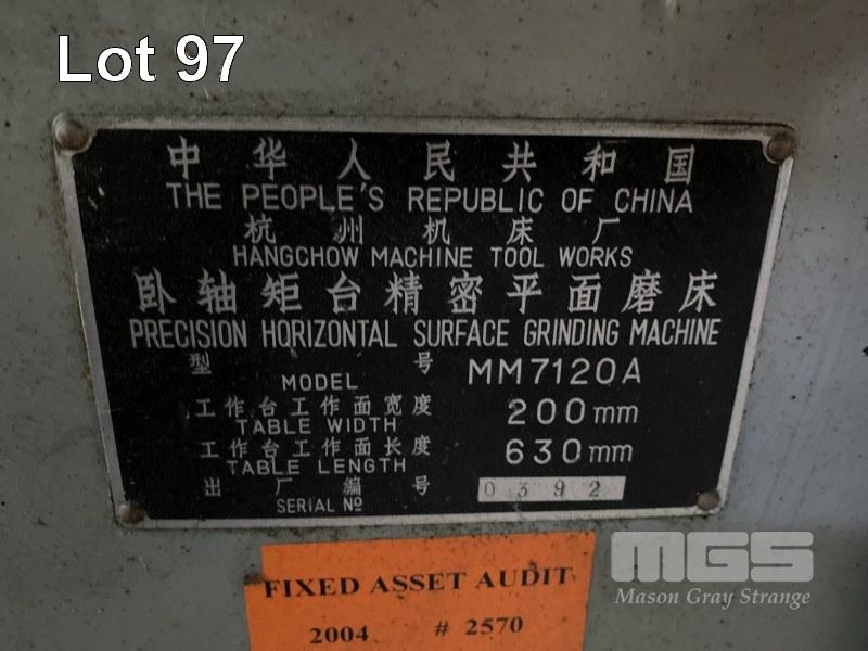 HANGCHOW MACHINE TOOL WORKS PRECISION HORIZONTAL SURFACE GRINDING MACHINE, MODEL: MM7120A, TABLE: 630mm (L) x 200mm (W), MAGNETIC VICE, WITH CONTROL PANEL & COOLANT/WASTE SYSTEM, 415v