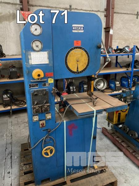 HESKA VERTICAL BAND SAW, MODEL: ESA5, TABLE SIZE: 615 x 610mm, THROAT SIZE: 300mm APPROX, ON BOARD BLADE WELDER & GRINDER, 415v