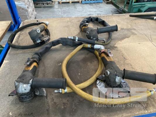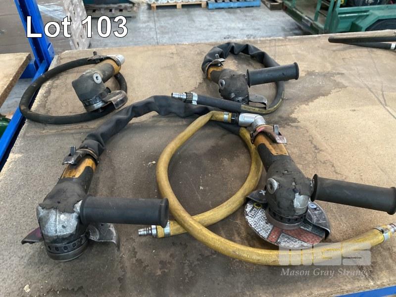 4 x PNEUMATIC ANGLE GRINDERS, SWIVEL HEADS, SUIT 125mm BLADE, WITH AIR FITTING