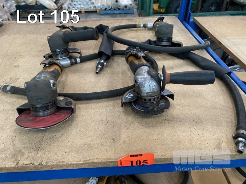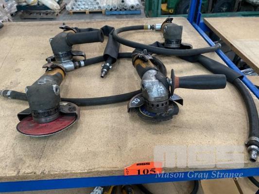 4 x PNEUMATIC ANGLE GRINDERS, SWIVEL HEADS, SUIT 125mm BLADE, WITH AIR FITTING