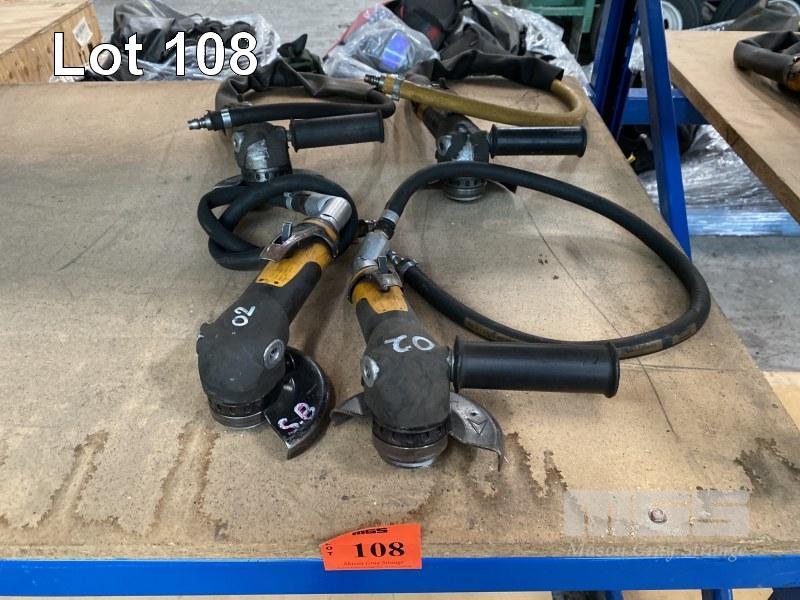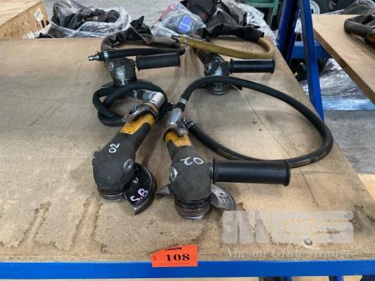 4 x PNEUMATIC ANGLE GRINDERS, SWIVEL HEADS, SUIT 125mm BLADE, WITH AIR FITTING