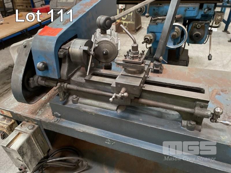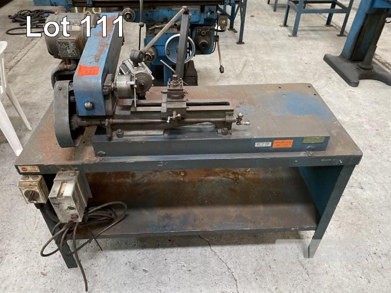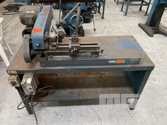HARDINGE MINATURE BENCH LATHE, 400mm BED APPROX, 150mm SWING, 80mm 3 JAW CHUCK, 415v, WITH VERTICAL POWER FEED, 4 WAY TOOL POST