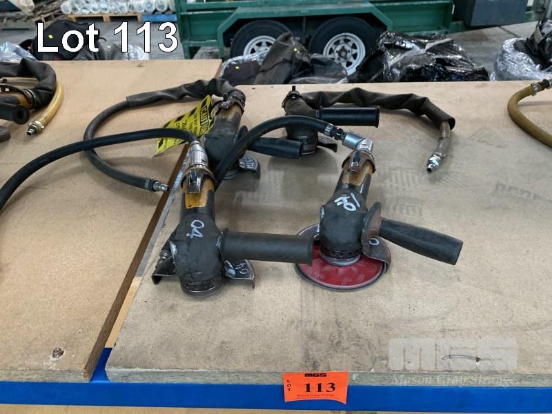 4 x PNEUMATIC ANGLE GRINDERS, SWIVEL HEADS, SUIT 125mm BLADE, WITH AIR FITTING