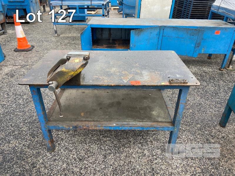 HEAVY DUTY PLATE TOP BENCH & DAWN OFFSET VICE, 125mm 1250 (L) x 700 (D) x 740mm (H) 8mm STEEL PLATE TOP