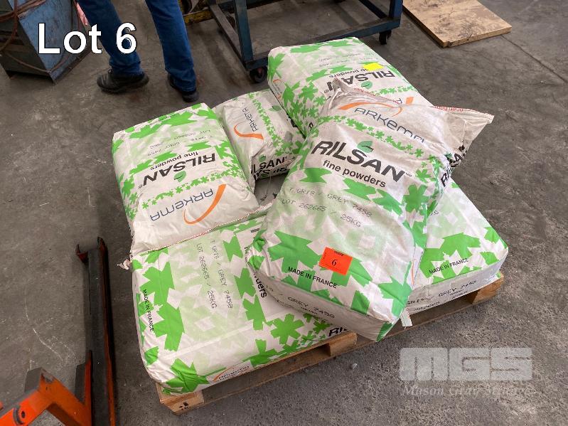 6 x 25kg BAGS RILASN FINE POWDERS, GREY, THERMO PLASTIC POLYAMIDES
