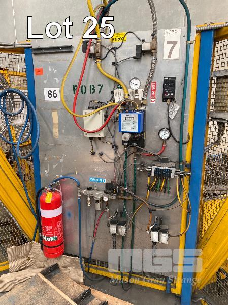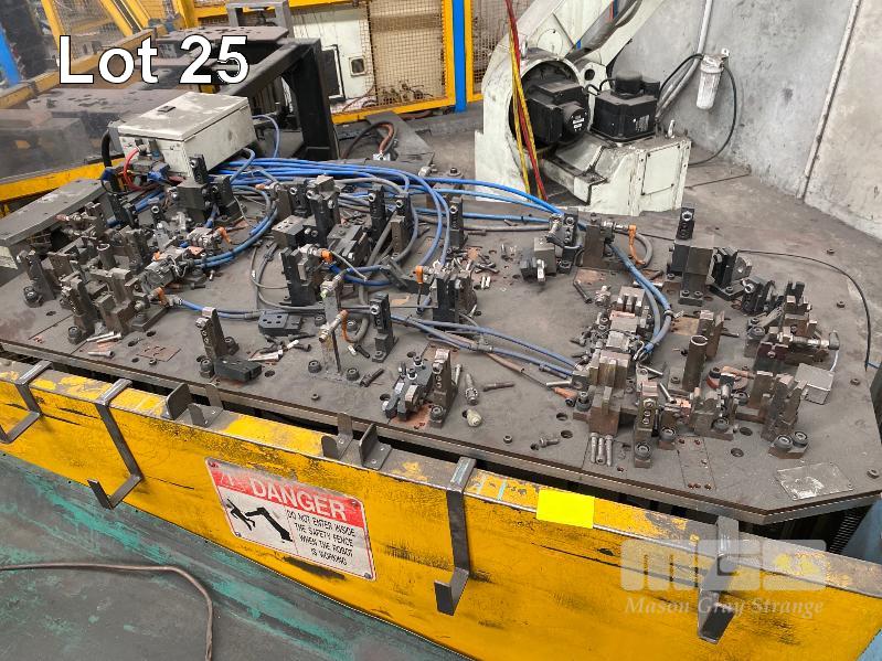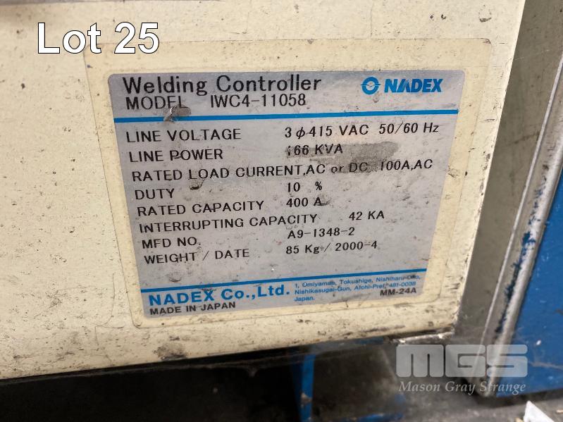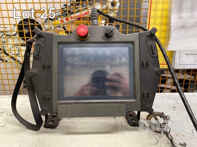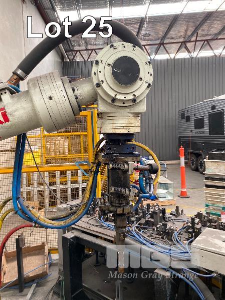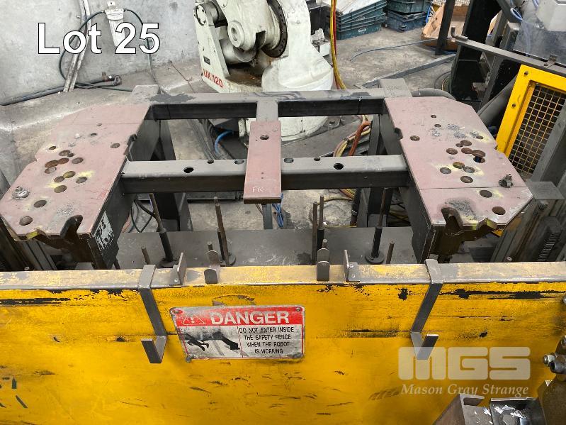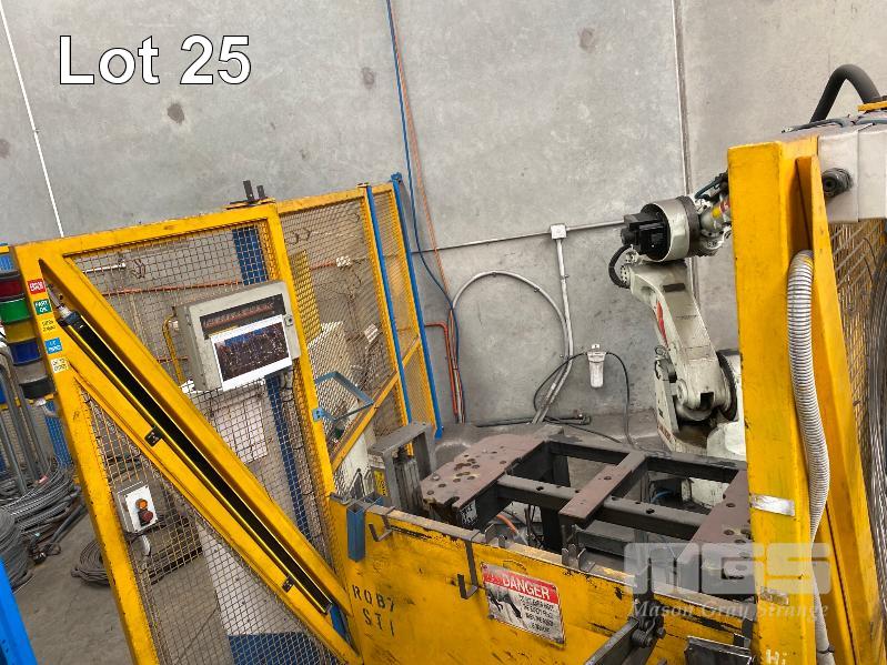 KAWASAKI ROBOTIC WELDING WORK STATION KAWASAKI ROBOT, TYPE: VX120, 6 AXIS ROBOT, SERIAL: 2639R0S3S, DOM: 2000 INCLUDES: 2 x SET UP TABLE IN SAFETY ENCLOSURE, DUAL ACCESS WITH INFARED SAFETY BEAMS, ES FITTED KAWASAKI ROBOT CONTROLLER, MODEL: C42F-A001, DOM:2000, SERIAL: 022639, WITH TEACH PENDANT NASDESCO POWER SUPPLY, MODEL: IWC4-11058
