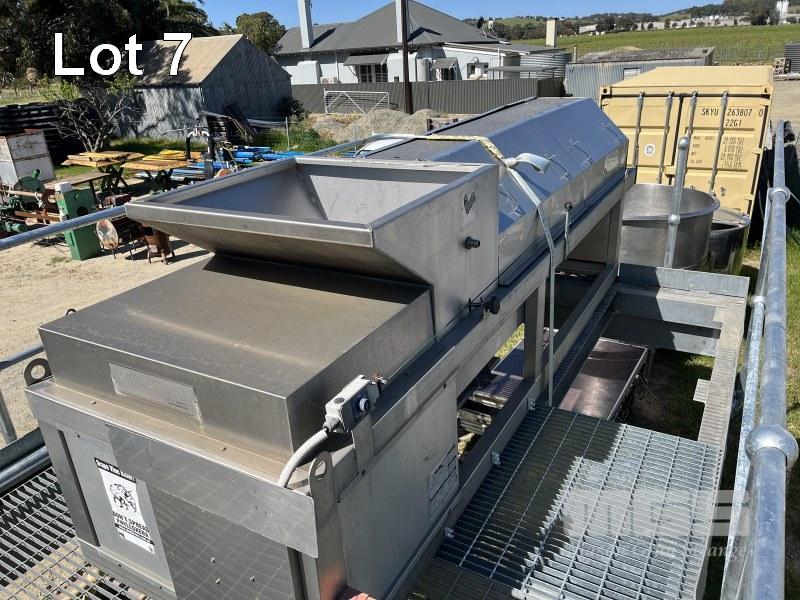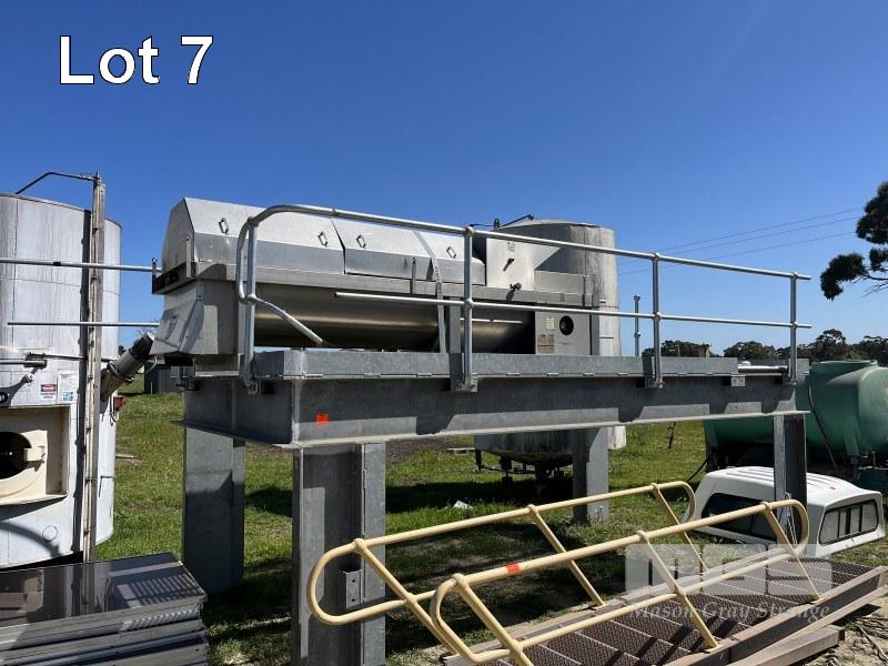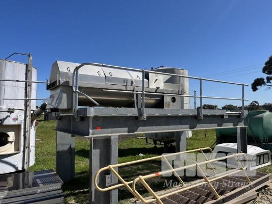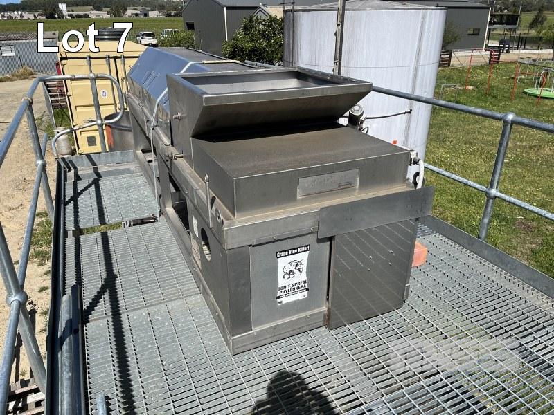 GRAPE CRUSHER, CINGANO DELLA TOFFOLA, 300mm STAINLESS STEEL AUGER, 10 TONNE PER HOUR CAP, STAINLESS STEEL, VARIABLE DRIVE, MOUNTED ON CHANNEL STEEL PLATFORM WITH HAND RAIL (EX RALPH BINDER WINES)