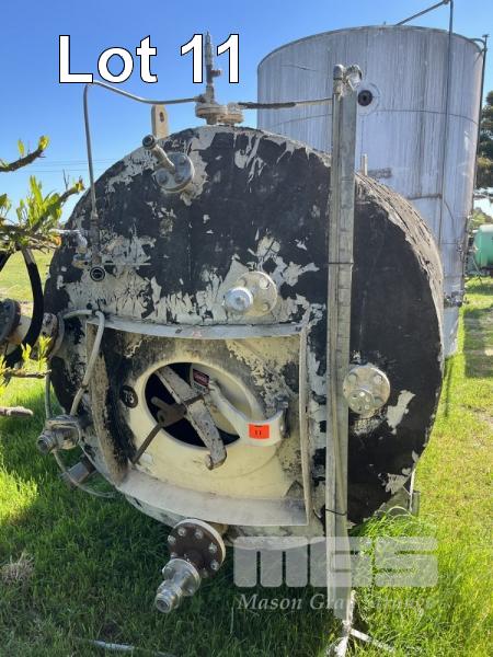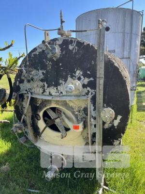 5,000L INSULATED WINE TANK, (PRESSURE TANK), MILD STEEL, WITH AGITATOR SUIT SPARKLING WINE, ON LEG BASE, FOOD GRADE EPOXY COATED