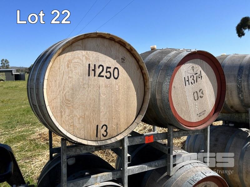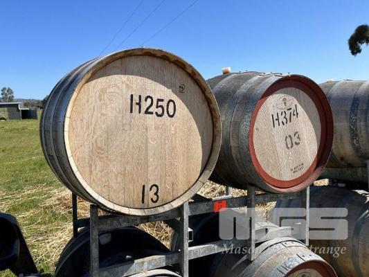 2 x 300L HOGSHEAD WINE BARRELS & GALV STAND, CONTAINING: 2018 ANDREZKE SHIRAZ