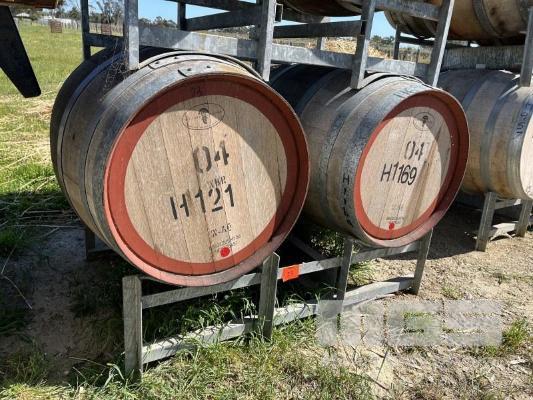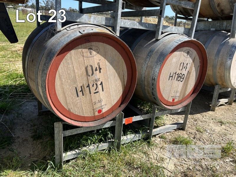 2 x 300L HOGSHEAD WINE BARRELS & GALV STAND, CONTAINING: 2018 ANDREZKE SHIRAZ