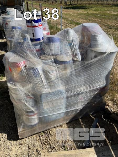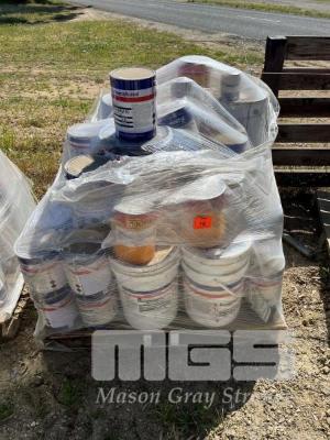 PALLET OF ASSORTED THINNERS, LARGE QUANTITY FULL & PARTIAL CANS, ASSORTED THINNERS, INTERTHERM 50, ETC.