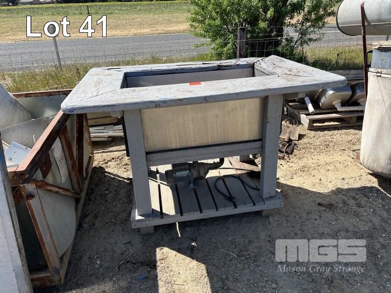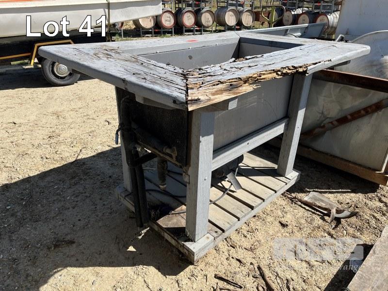 STAINLESS STEEL TROUGH WITH 240v PUMP, 1000 x 500 x 400mm DEEP, TIMBER SURROUND POOR CONDITION