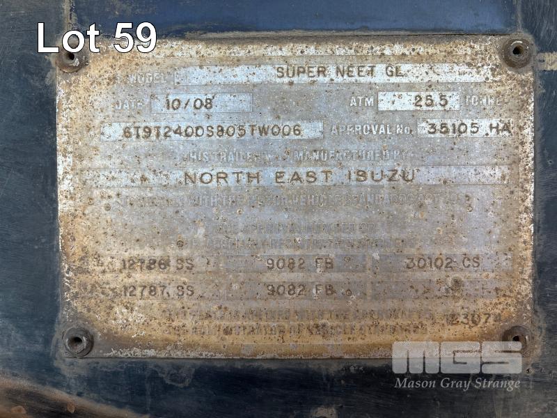 NORTH EAST ISUZU TIPPER TRAILER, DOM: 2008, 'SUPER DOG', AIRBAGS, RING COUPLER, ROLLING CANOPY, VIN: 6T9T2400S805TW006, MODEL: NEET GL,GTM: 25,500kg, ATM: 25,500kg, HAS RECENTLY CLEARED REGENCY, WITH PAPERS