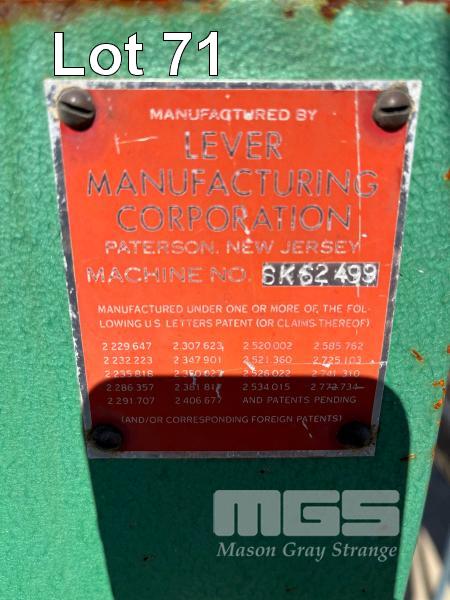 LEVER MANUFACTURING CORPORATION PAPER ROLL SLITTING MACHINE, MACHINE NO: SK62499, 1650mm ROLL CAP: SELF SHARPENING BLADE, 415v