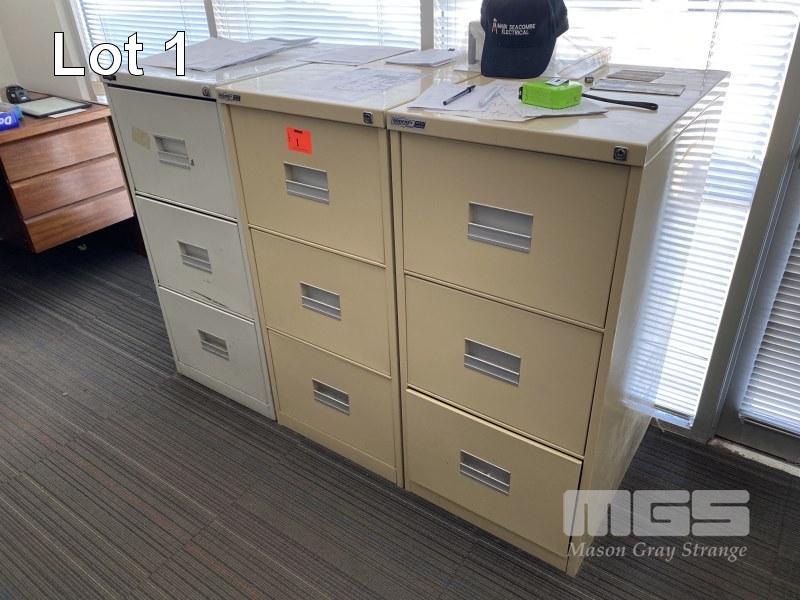 3 x 3 DRAWER FILING CABINETS, GODFREY, STEEL, FAWN