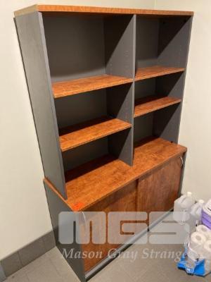 CREDENZA & BOOKSHELF, 1200 x 450mm & 3 DOOR WALL MOUNT CUPBOARD, 1400 x 350mm