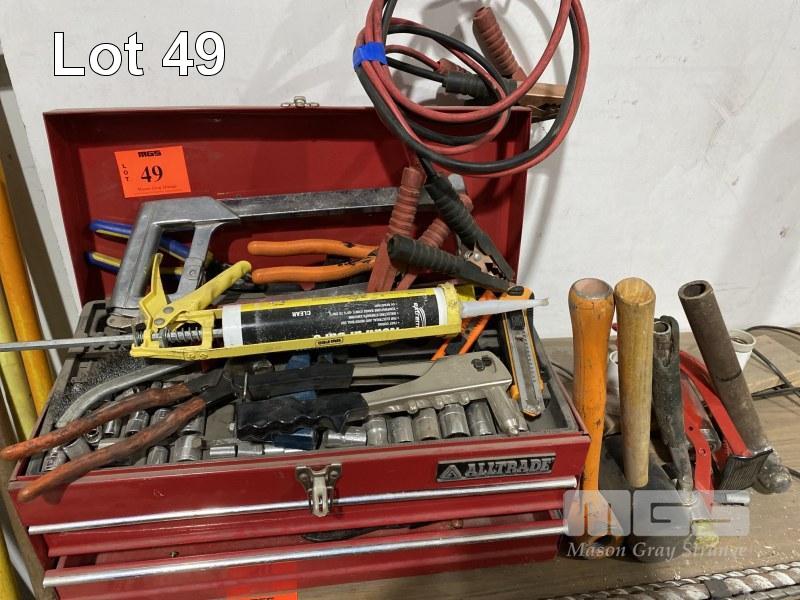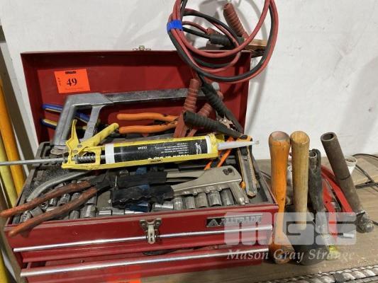 TOOL BOX & CONTENTS INCLUDING SOCKETS, PLIERS, CUTTERS, POP RIVET GUN, HEX KEYS,HAMMERS MALLETS, ETC