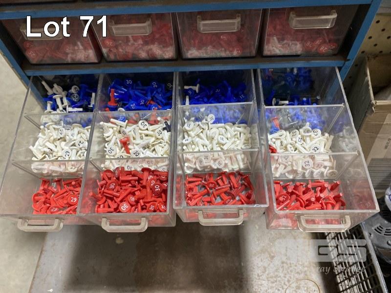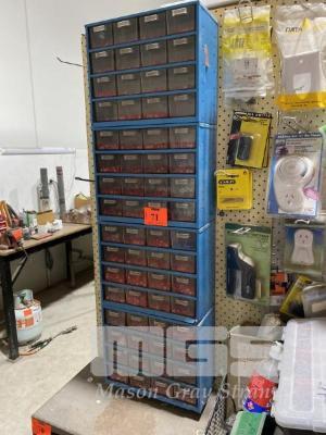 4 x 16 DRAWER PARTS RACK & CONTENTS, CIRCUIT NUMBER TAGS