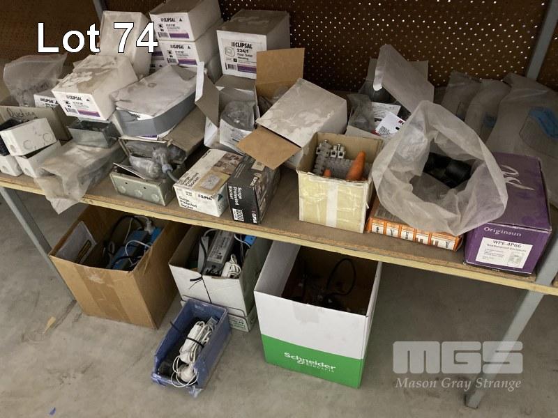 ASSORTED ELECTRICAL HARDWARE, WALL PLATES, VENTSFLEX CONDUIT & CONNECTORS & CARTONS OF BALLASTS, CONTENTS 1 x BAY, 3 x SHELVES