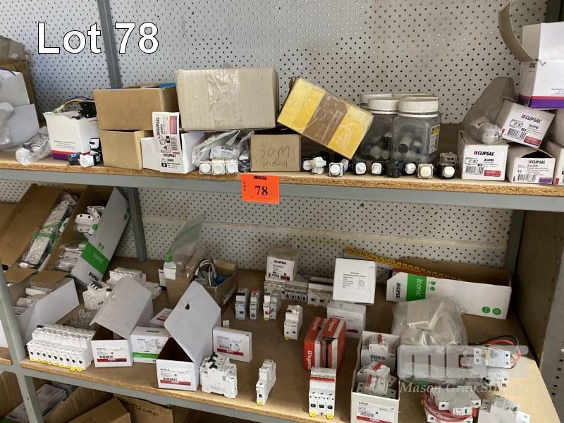 ELECTRICAL COMPONENTS INCLUDING CIRCUIT BREAKERS, LIGHT BULBS, SWITCHES, CONTENTS 1 x BAY