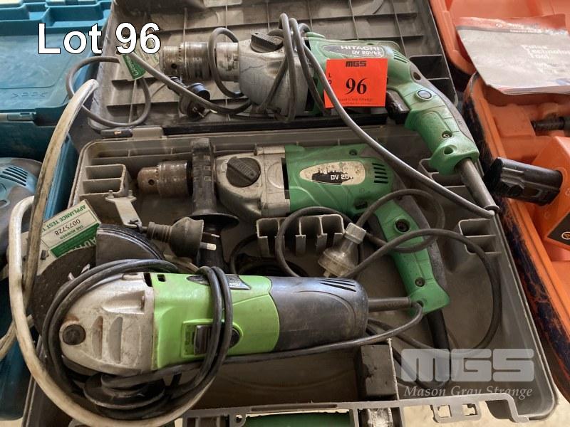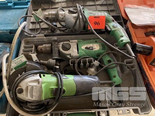 2 x HAMMER DRILLS, HITACHI DV20VB2 & ANGLE GRINDER, ROK, 115mm