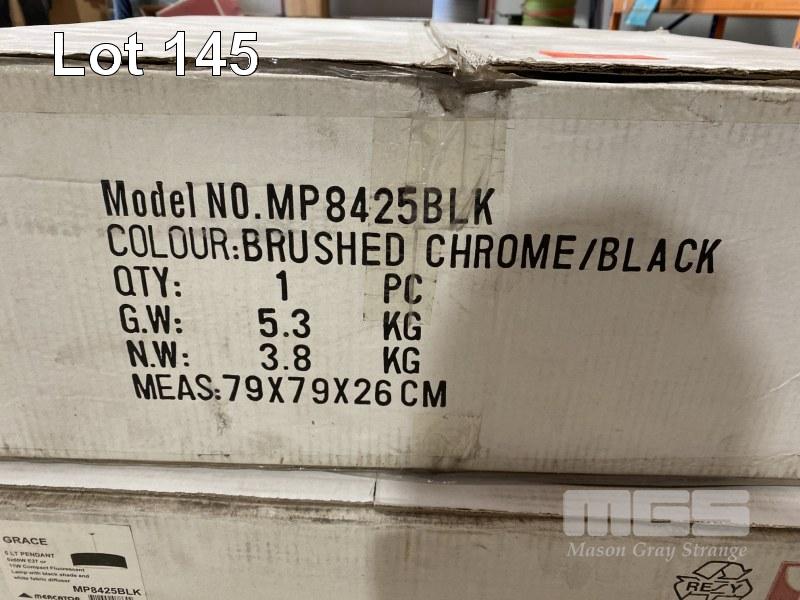 PAIR GRACE LARGE HANGING LIGHTS, 5 x 60w, BRUSH CHROME & BLACK
