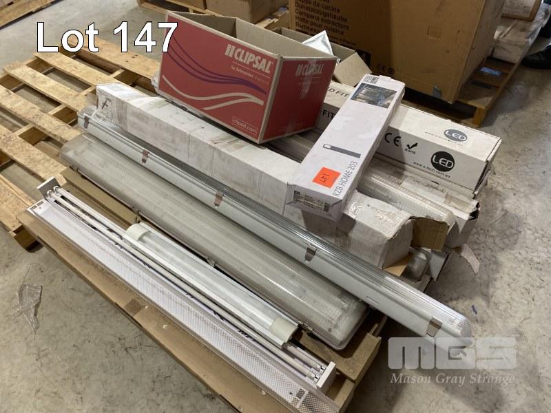 QUANTITY ENCLOSED FLURO LIGHTS & VARIOUS GLOBES