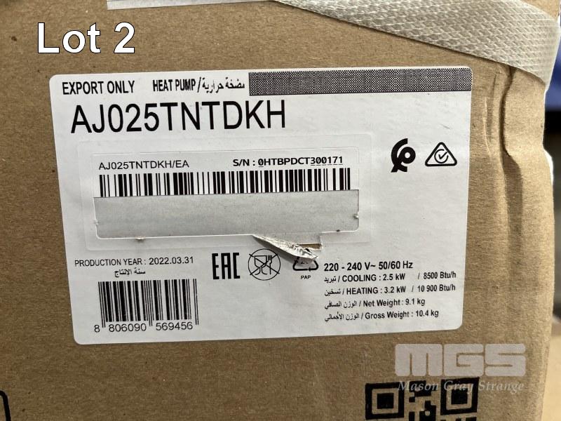 NEW SAMSUNG SPLIT SYSTEM AIRCONDTIONER WITH 2 x HEAD UNITS OUTDOOR UNIT MODEL: AJ100TXJ5KH, COOLING: 10kw, HEATING: 12kw INDOOR HEAD UNIT MODEL: AJ050TNTDKH, COOLING: 5kw, HEATING 6kw INDOOR HEAD UNIT MODEL: AJ025TNTDKH, COOLING: 2.5kw, HEATING: 3.2kw ALL NEW IN BOX! DOM: 2022 WITH SUPERSLAB INSTALLATION KIT