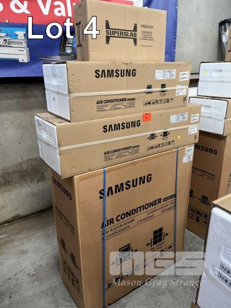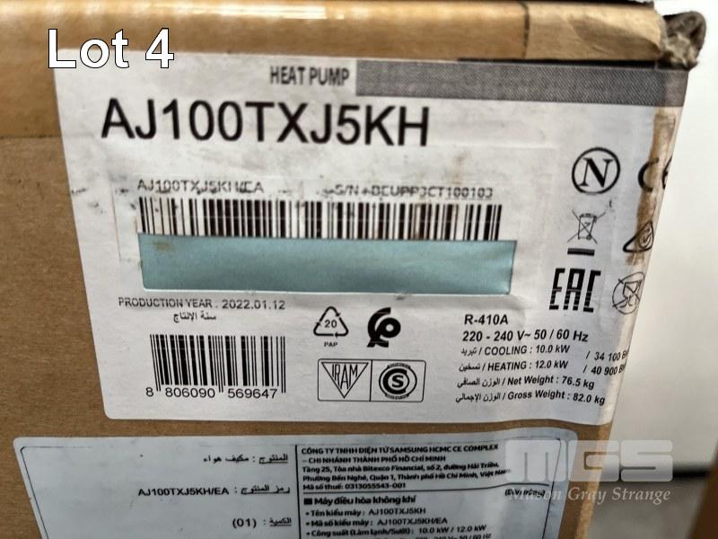 NEW SAMSUNG SPLIT SYSTEM AIRCONDTIONER WITH 2 x HEAD UNITS OUTDOOR UNIT MODEL: AJ100TXJ5KH, COOLING: 10kw, HEATING: 12kw INDOOR HEAD UNIT MODEL: AJ050TNTDKH, COOLING: 5kw, HEATING 6kw INDOOR HEAD UNIT MODEL: AJ025TNTDKH, COOLING: 2.5kw, HEATING: 3.2kw ALL NEW IN BOX! DOM: 2022 WITH SUPERSLAB INSTALLATION KIT