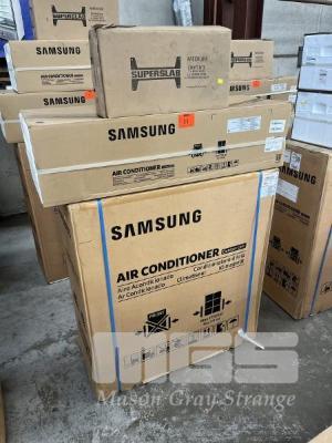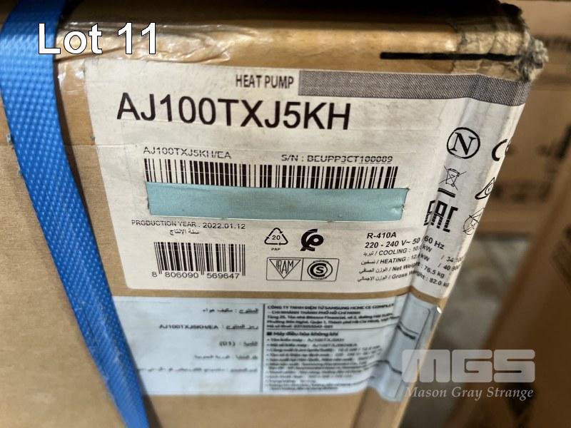 NEW SAMSUNG SPLIT SYSTEM AIRCONDTIONER WITH 1 x HEAD UNITS OUTDOOR UNIT MODEL: AJ100TXJ5KH, COOLING: 10kw, HEATING: 12kw INDOOR HEAD UNIT MODEL: AJ050TNTDKH, COOLING: 5kw, HEATING 6kw ALL NEW IN BOX! DOM: 2022 WITH SUPERSLAB INSTALLATION KIT
