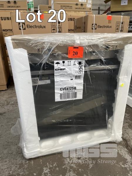 NEW CHEF ELECTRIC FAN FORCED OVEN CHEF OVEN, MODEL: CVE612SB, 596 (D) x 573 (W) x 597mm (H), MULTI-FUNCTION 3, STAINLESS STEEL, FAN FORCED OVEN WITH 10A 240v PLUG & PLAY, DIAL CONTROLS, 80L CAP, RRP: $749, NEW IN BOX!