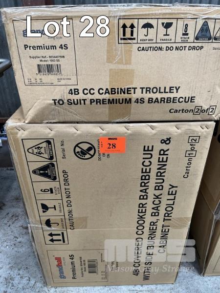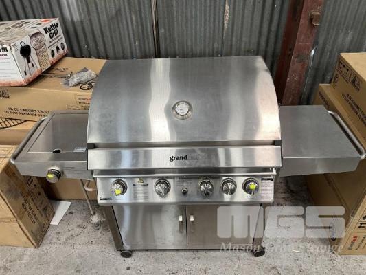 GRANDHALL PREMIUM 4 BURNER HOODED BBQ, STAINLESS STEEL