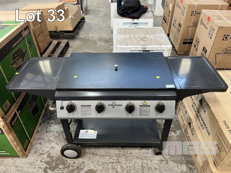 GRILLMASTER 4 BURNER FLAT TOP BBQ, ON MOBILE TROLLEY MODEL: 1000-4B NEW IN BOX (1 BOX)