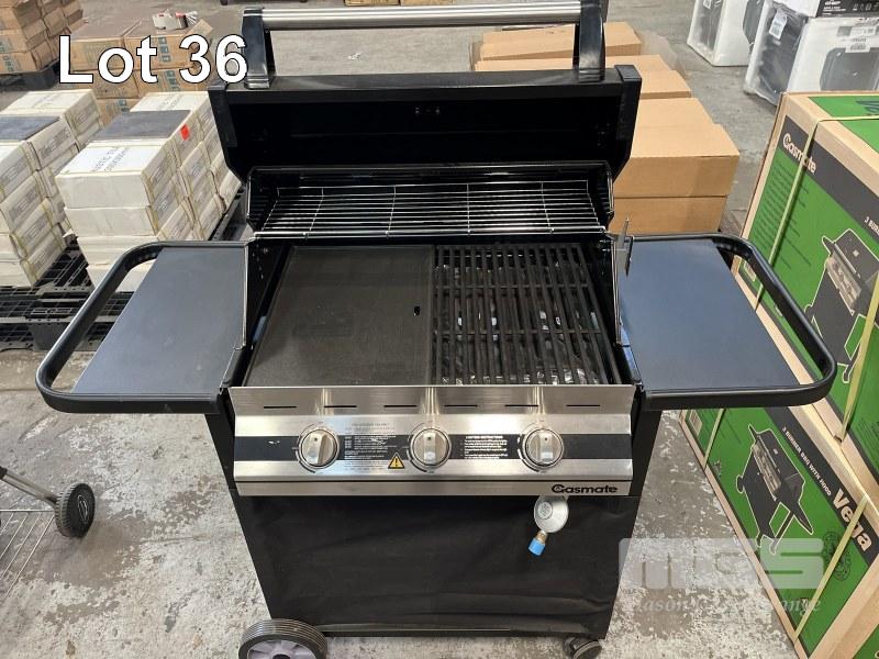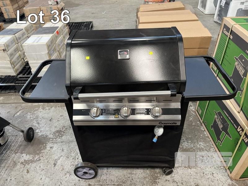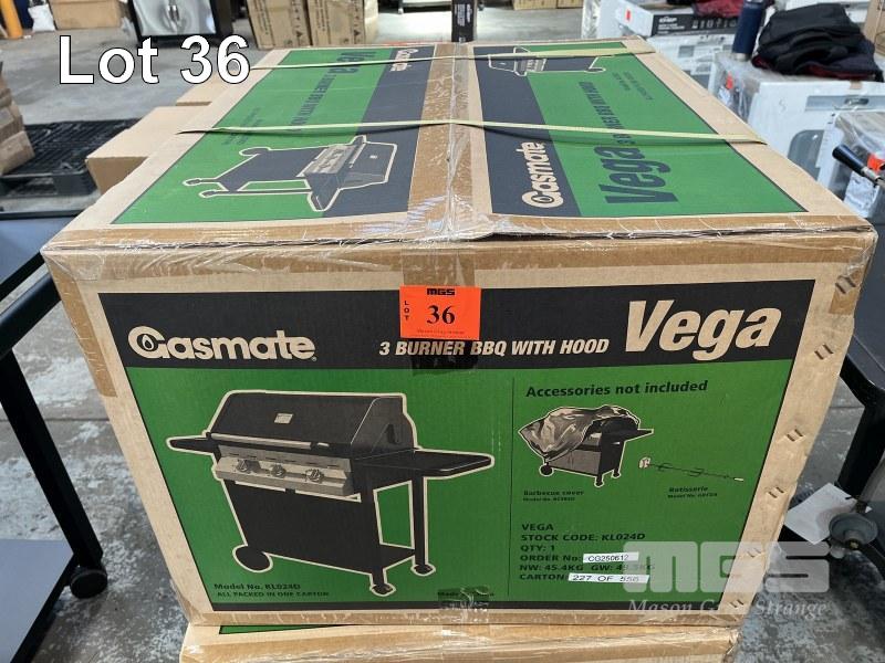 GASMATE VEGA, 3 BURNER BBQ WITH HOOD ON TROLLEY MOD: KLO24D (ORP $399) NEW IN BOX