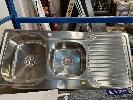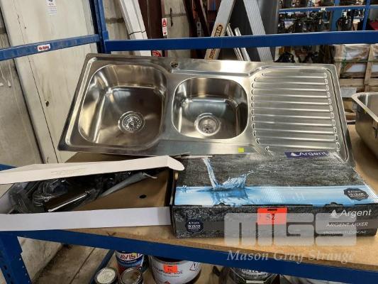 3 x ARGENT MIXER TAP SETS, 2 CHROME, 1 BLACK, (MISSING SOME FITTINGS) & TWIN BOWL STAINLESS STEEL SINK, 1080 x 485mm