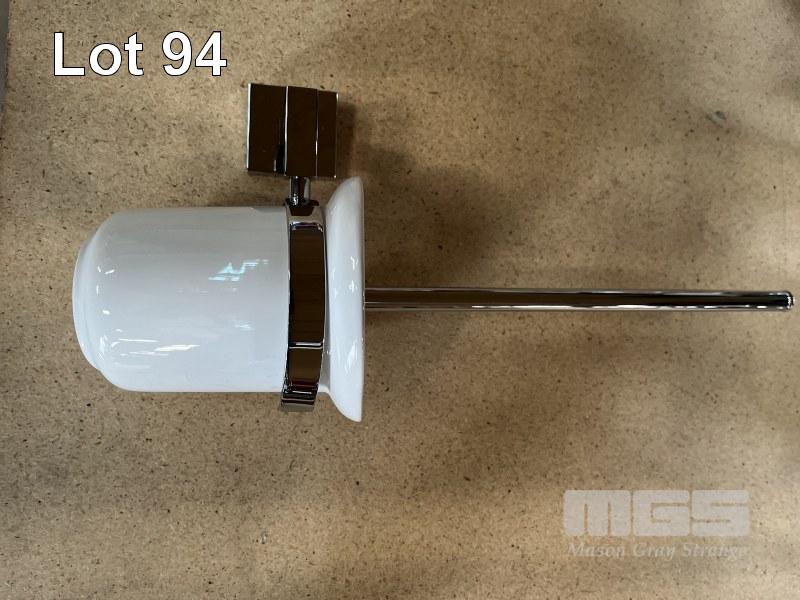 10 x WALL MOUNT TOILET BRUSH HOLDERS & BRUSHES, CERAMIC & CHROME, WITH FITTINGS, NEW IN BOXES!