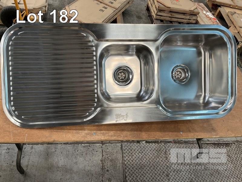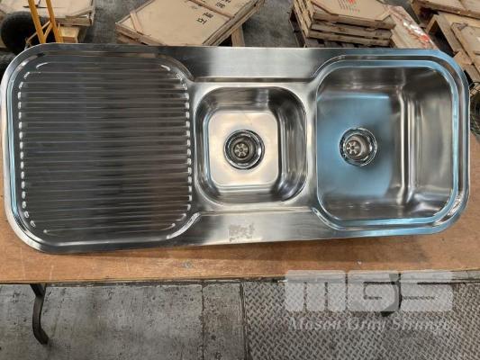 2 x TWIN BOWL STAINLESS STEEL SINK, 1200 x 500mm, NEW IN PACKAGING WITH FITTINGS
