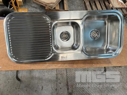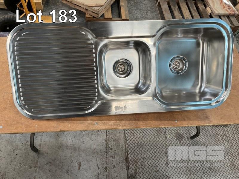 2 x TWIN BOWL STAINLESS STEEL SINK, 1200 x 500mm, NEW IN PACKAGING WITH FITTINGS