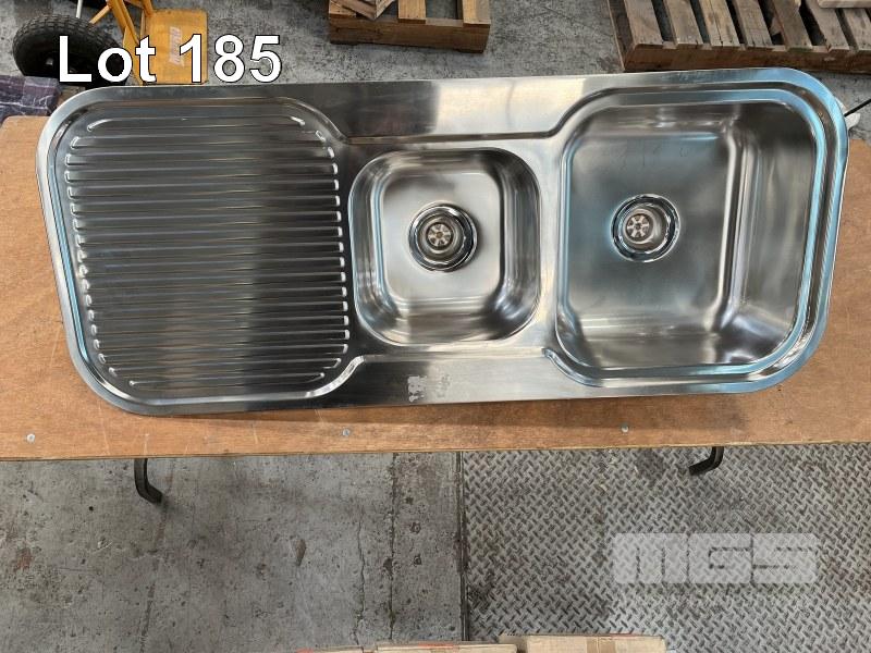 2 x TWIN BOWL STAINLESS STEEL SINK, 1200 x 500mm, NEW IN PACKAGING WITH FITTINGS