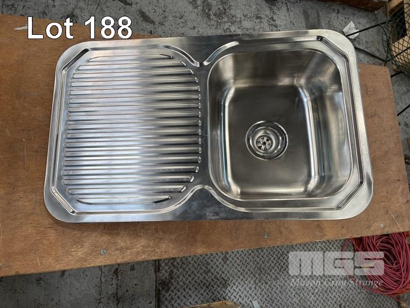2 x SINGLE BOWL STAINLESS STEEL SINK, 775 x 480mm NEW IN PACKAGING WITH FITTINGS