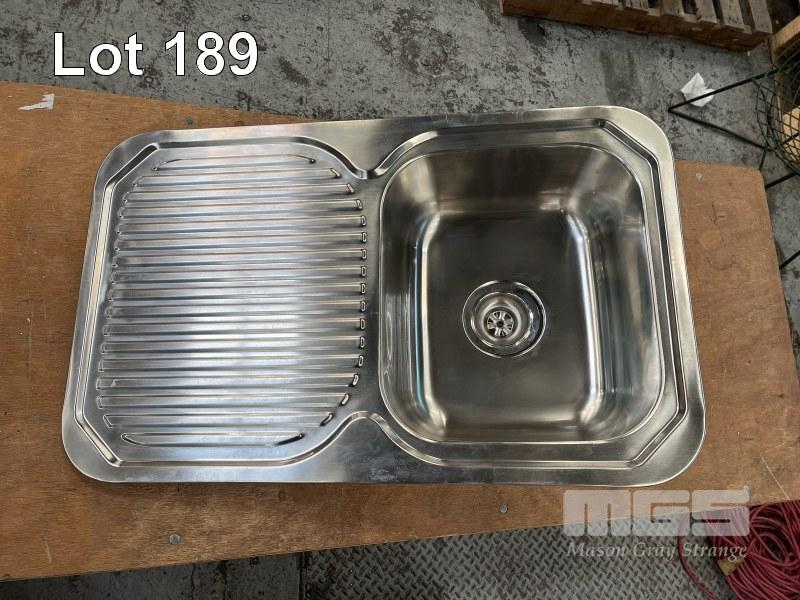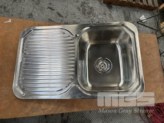 2 x SINGLE BOWL STAINLESS STEEL SINK, 775 x 480mm NEW IN PACKAGING WITH FITTINGS