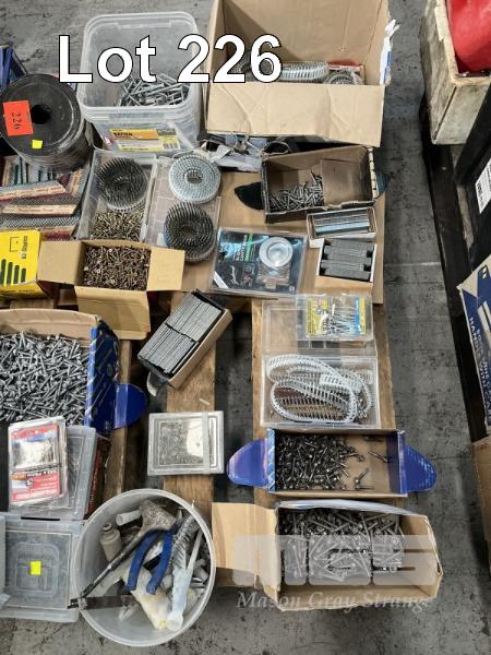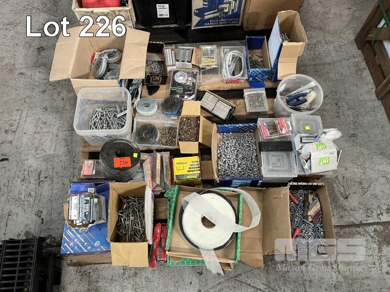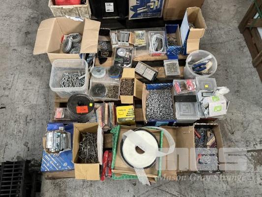 PALLET LOT BUILDERS HARDWARE: SCEWS, PASLODE NAILS, DAMP COURSE, GALV BUGLES, PASLODE STAPLES, DOOR HINGES ETC.