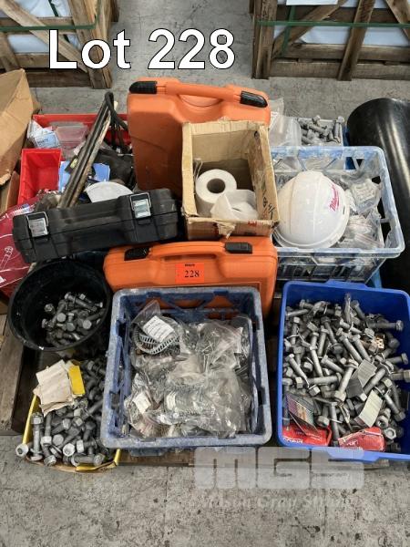 PALLET LOT BUILDERS HARDWARE, STEEL PINS, GALV STRUCTURAL BOLTS, GALV NAILS, HARD HATS, TOOL BELTS, POWER TOOL CASES, POP RIVETS ETC.