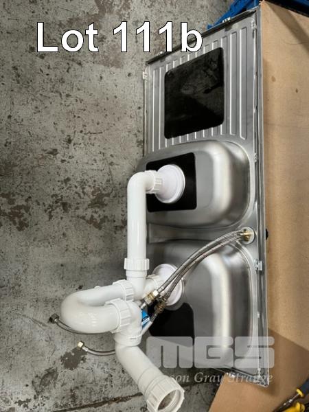 STAINLESS STEEL DOUBLE BOWL SINK 1080 x 480mm WITH MIXER TAP, FLEXI HOSE & PVC PLUMBING, READY TO INSTALL!