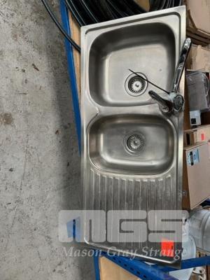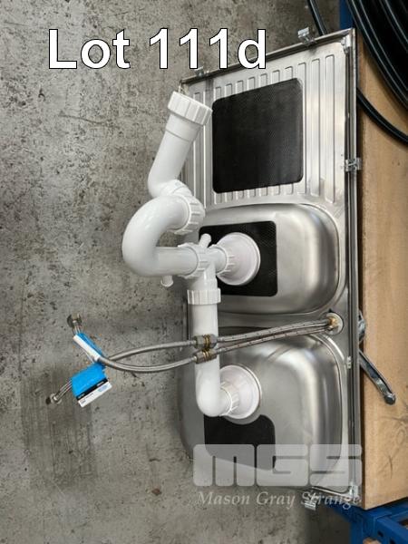 STAINLESS STEEL DOUBLE BOWL SINK 1080 x 480mm WITH MIXER TAP, FLEXI HOSE & PVC PLUMBING, READY TO INSTALL!